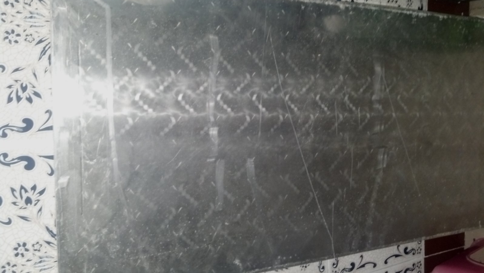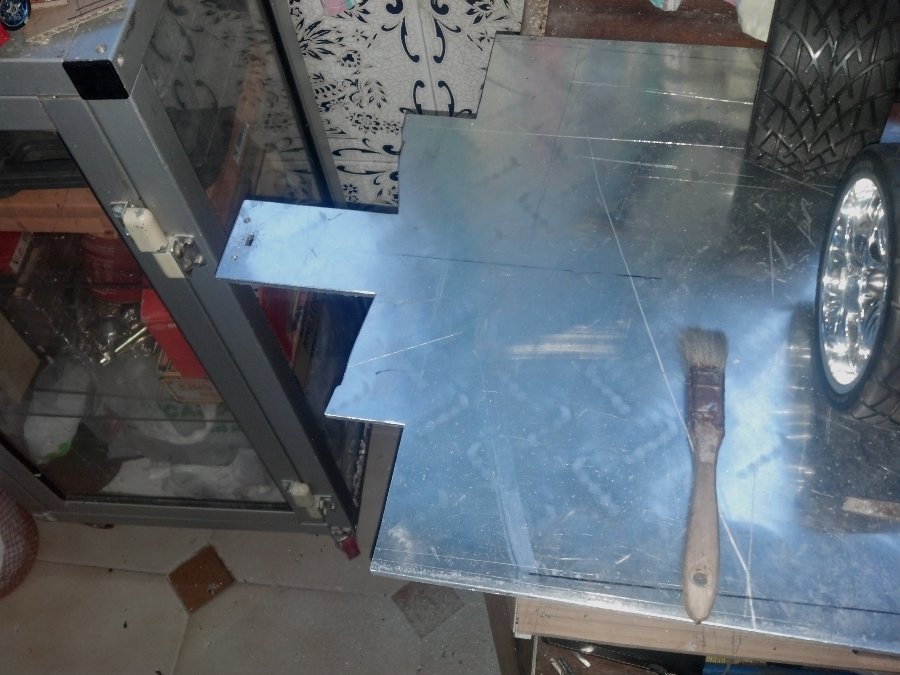 Aspecto del chasis antes del corte, plancha de aluminio 900/420/5mm (largo/ancho/grosor).