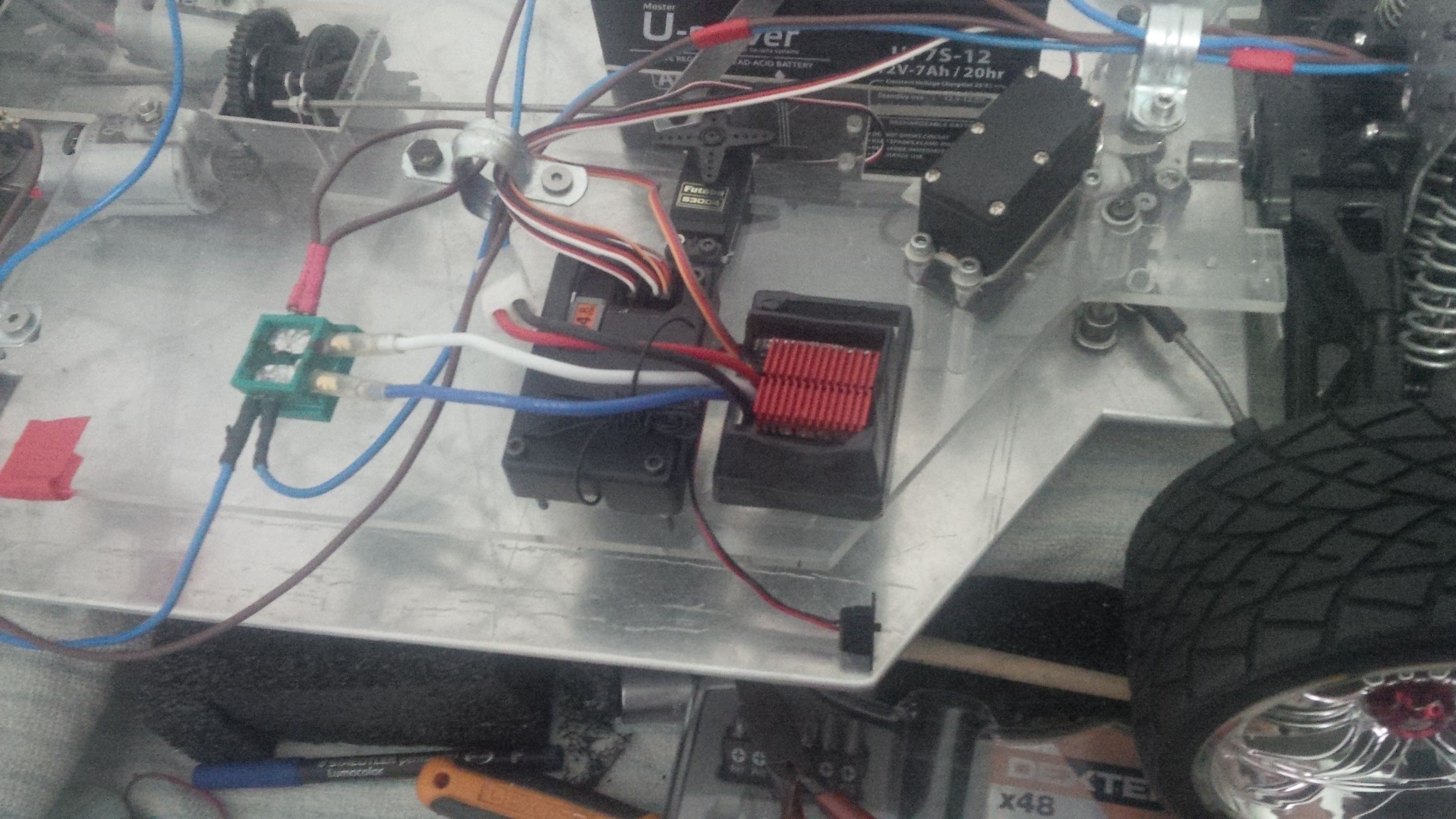 Vista de receptor, variadores, servo dirección, servo freno, batería.
